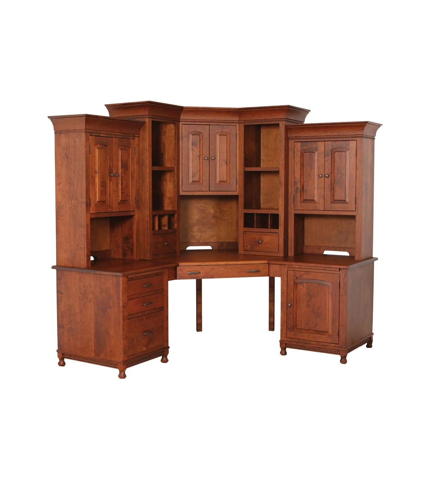 Shown with: 1 Keyboard Drawer, 2 Pencil Drawers, 1 File Drawer, 1 Writing Board Pullout, 1 False Drawer Front w/ Printer Pullout, & Adjustable Shelf